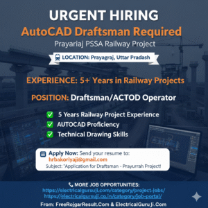 🏗️ AutoCAD Draftsman Required for Prayagraj PSSA Railway Project We are seeking an experienced AutoCAD Draftsman for the prestigious Prayagraj PSSA …